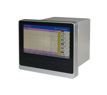 7英寸800*480點陣寬屏TFT高亮度彩色圖形液晶顯示,LED背光、畫面清晰、寬視角。 顯示內(nèi)容可由漢字,數(shù)字,過程曲線,棒圖等組成,通過面板按鍵可完成畫面翻頁,歷史數(shù)據(jù)前后搜索,曲線時標變更等 |